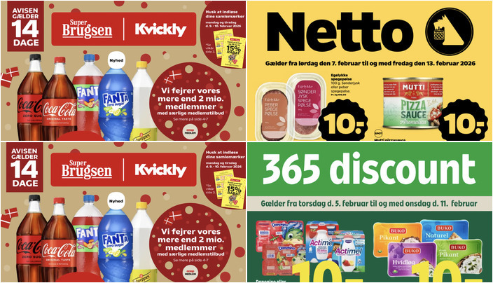 Kvickly tilbyder Coca-Cola, Fanta eller Schweppes i flere varianter (125-150 cl) til kun 11 kr. pr. flaske. Bemærk, at der er et begrænset parti. Tilbuddet gælder fra fredag den 6. februar til torsdag den 19. februar.
